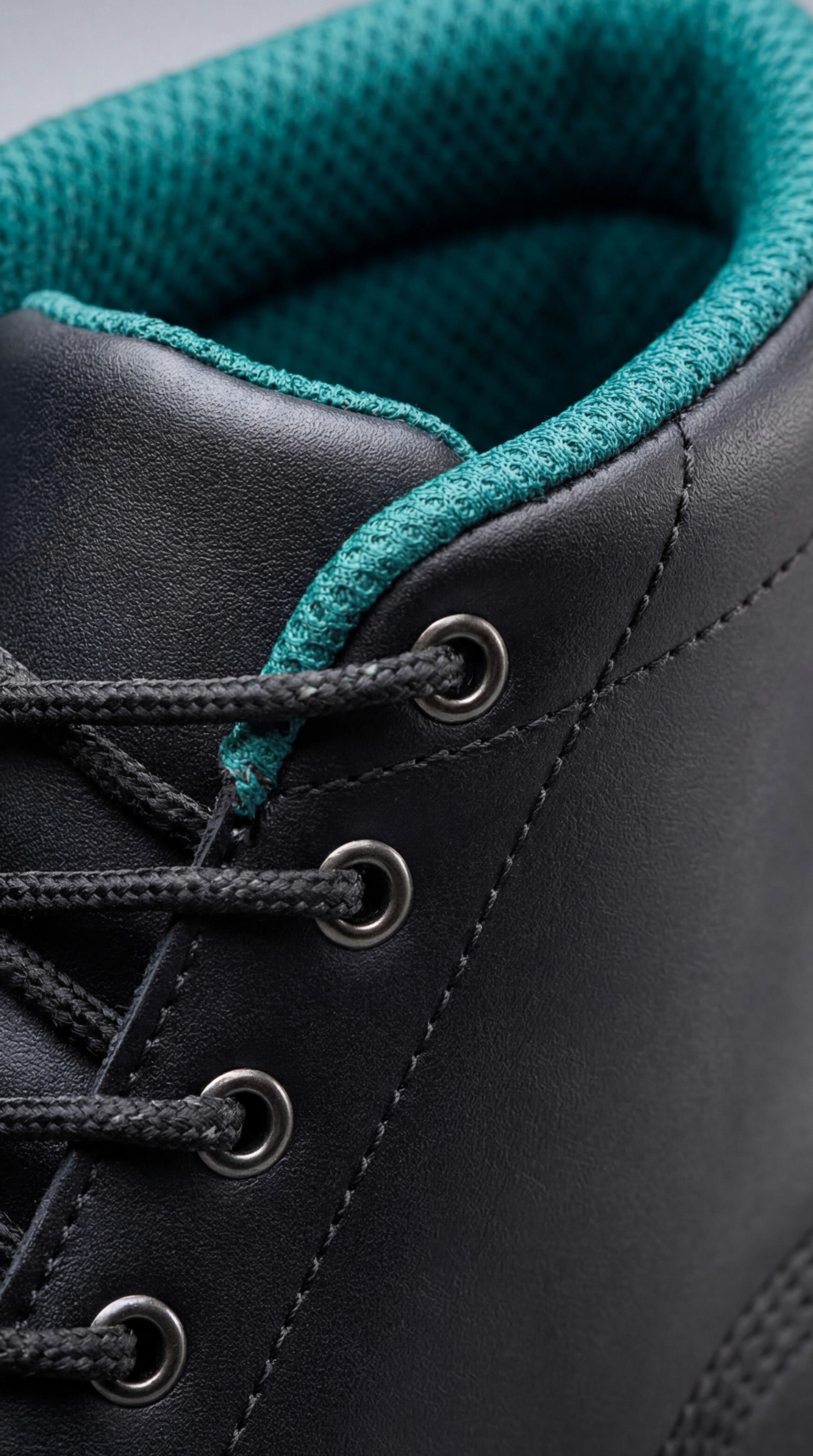Forro interior verde azulado visible en collar