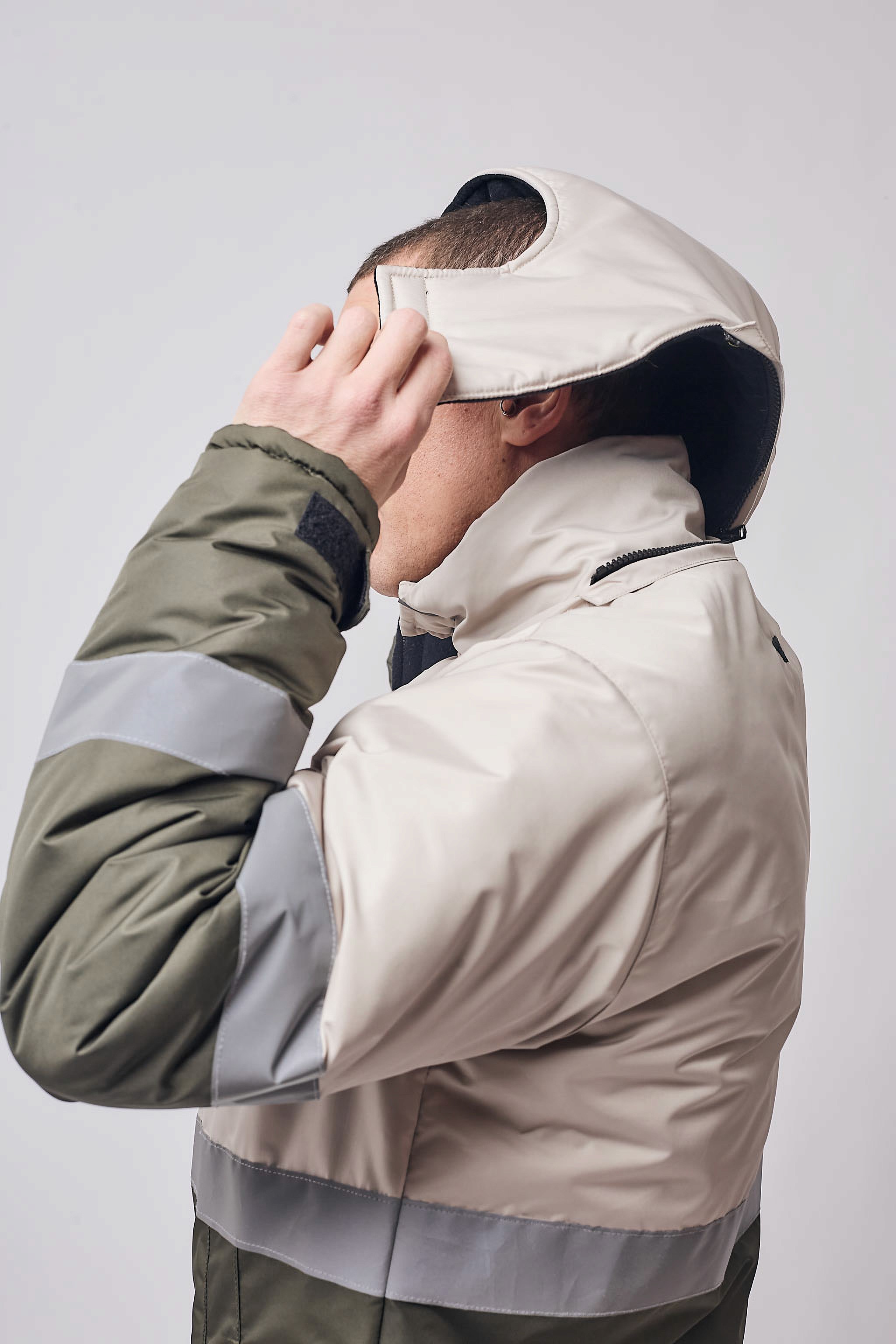 • Capucha desmontable con tapabocas y velcro