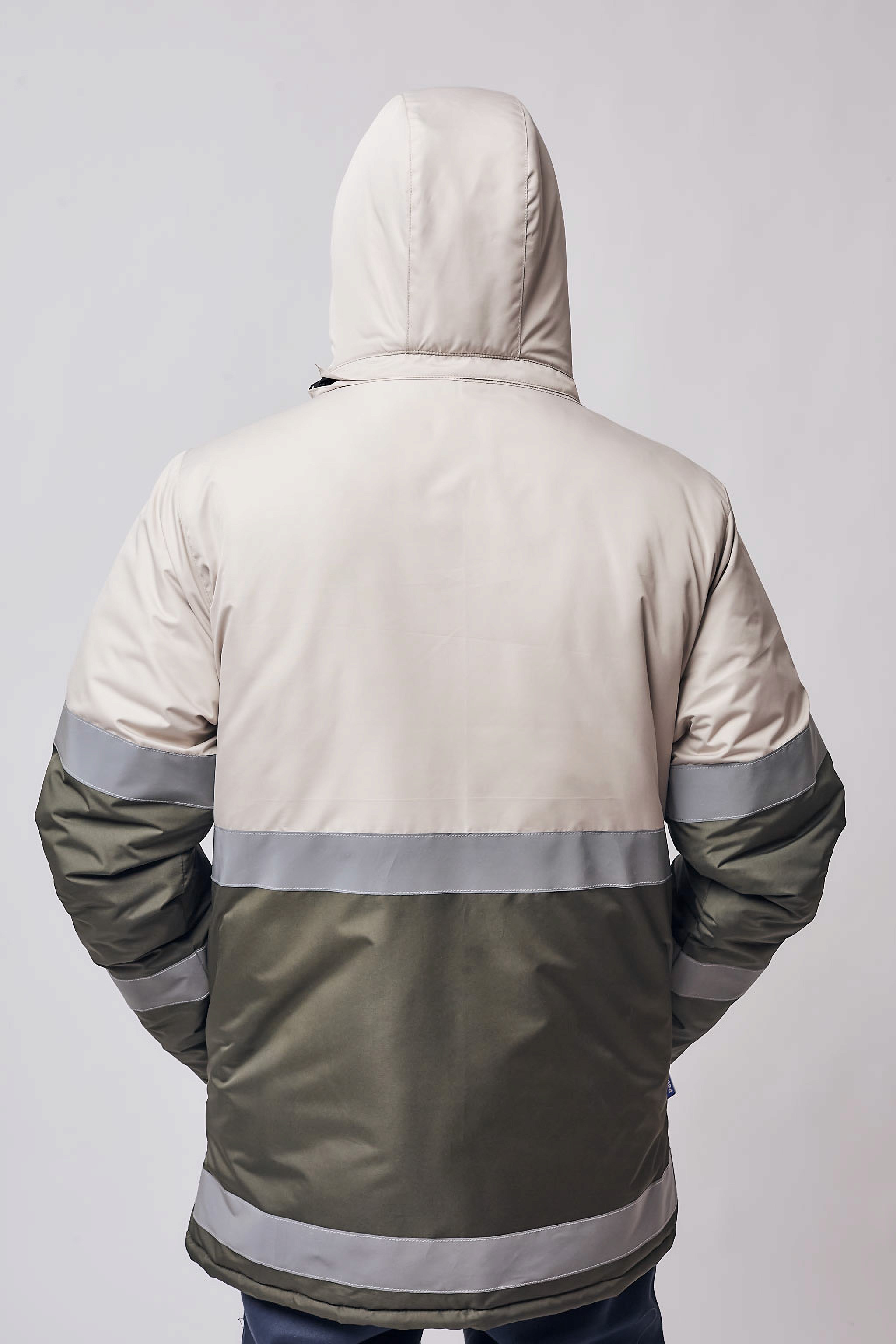 Campera de abrigo trucker bicolor con matelassé de polar y capucha desmontable con tapabocas y cierre de velcro. Acceso principal con cierre cubierto por carterón con broches PVC y vivo reflectivo lateral. Cuenta con dos bolsillos inferiores con cierre y dos superiores: uno con fuelle y tapa, y otro vertical con cierre. Presenta doble cinta reflectiva gris 360° en brazos y cuerpo. Su estructura térmica, sumada a múltiples puntos de ajuste y amplios espacios de guardado, garantiza protección, calidez y visibilidad en condiciones demandantes.