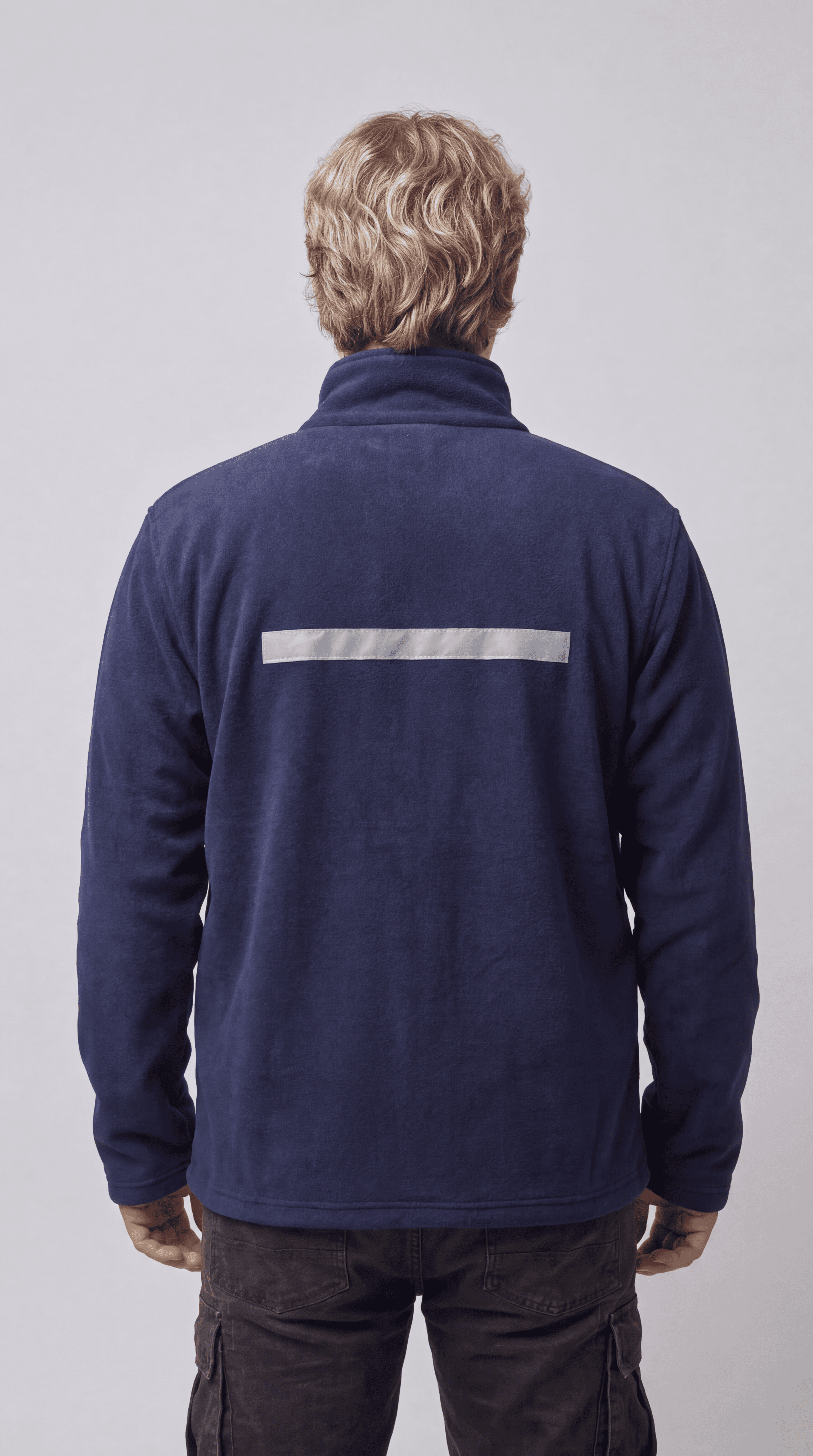 Chaleco de polar calidad PREMIUM con cuello alto y acceso principal mediante cierre frontal. Incorpora bolsillos tipo canguro en el frente para guardado rápido y manos seguras. Presenta cinta reflectiva parcial en frente y espalda para mejorar la visibilidad operativa en entornos de baja iluminación.