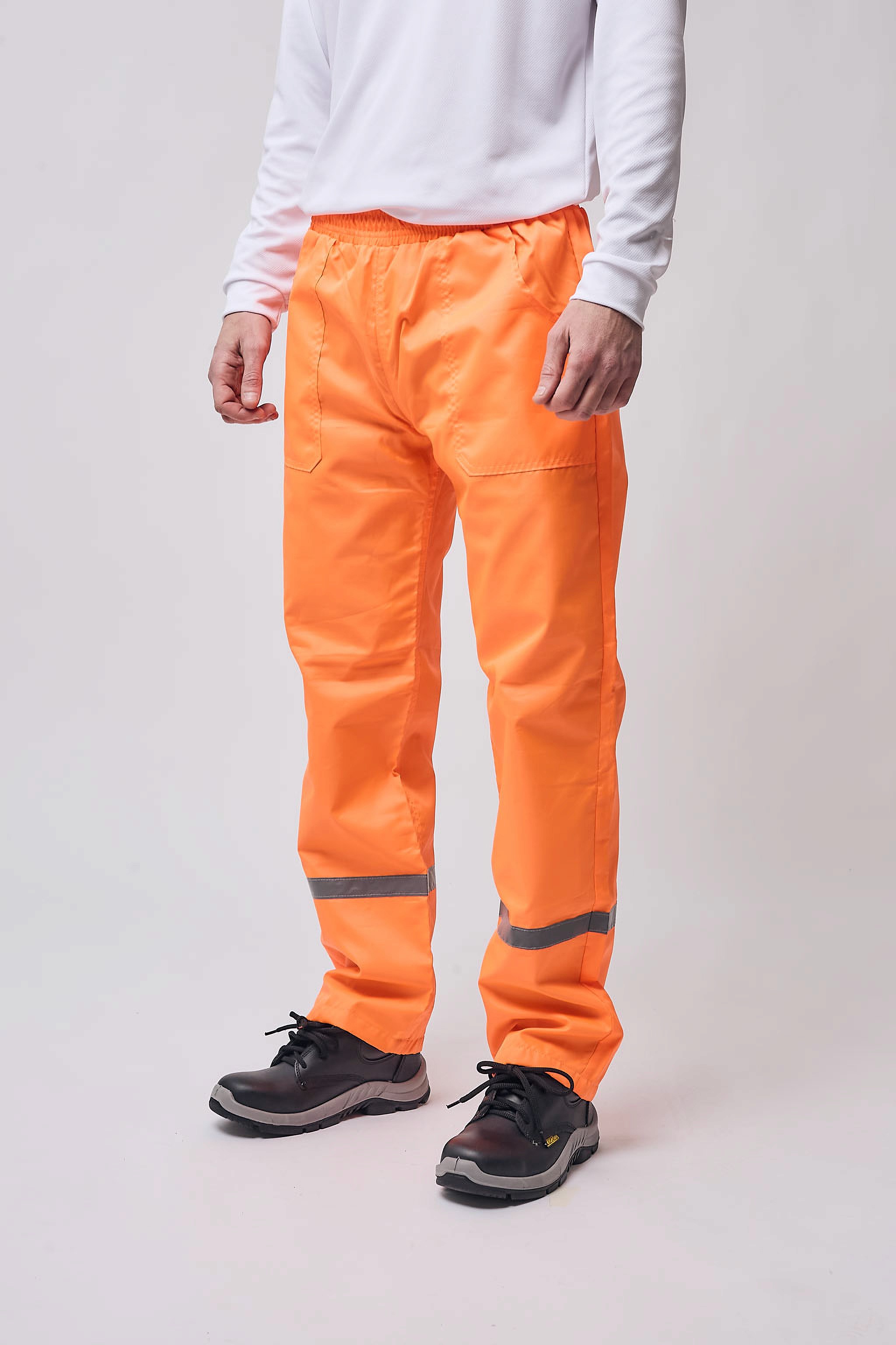 Pantalón de seguridad en color alta visibilidad con cintura elastizada y bolsillos delanteros amplios. Presenta cintas reflectivas 360° en pantorrillas para mayor visibilidad y seguridad en el trabajo. Confeccionado en material resistente y de fácil mantenimiento. Su diseño operativo y su capacidad de destacarse en entornos de riesgo lo convierten en una prenda confiable para jornadas exigentes, manteniendo comodidad y protección constante.