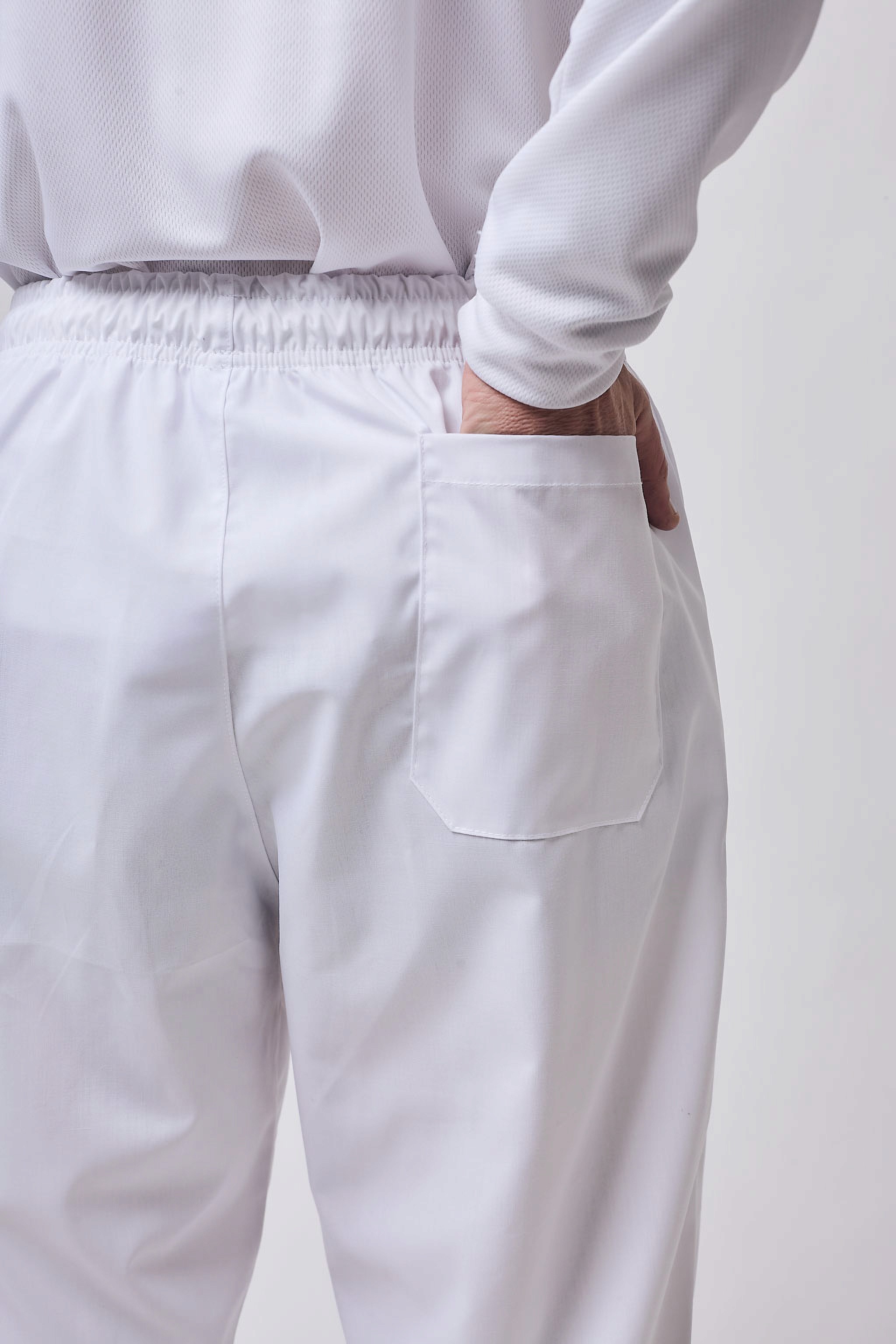 Pantalon de ambo con cintura elastizada, bolsillos delanteros aplicados y bolsillo trasero. De calce cómodo y práctico para uso diario.