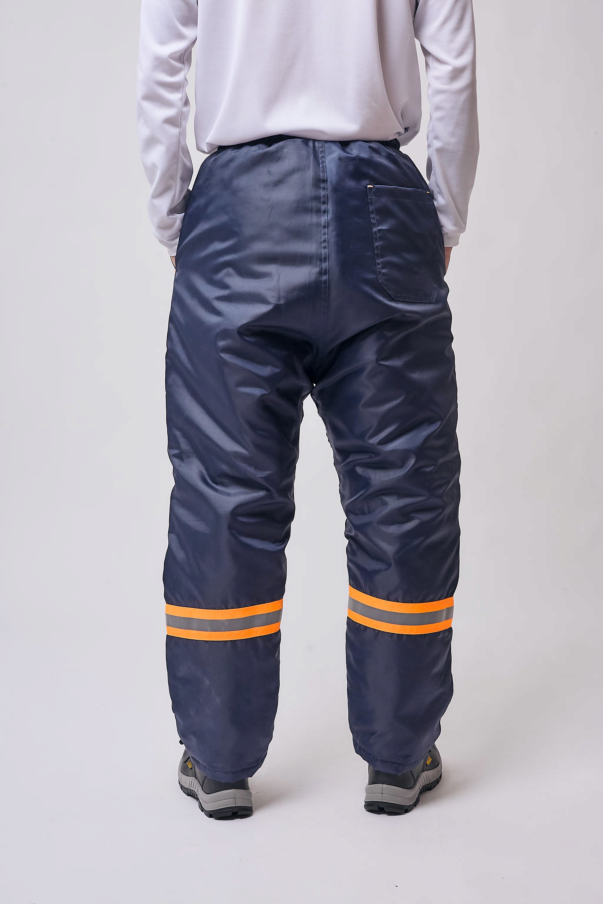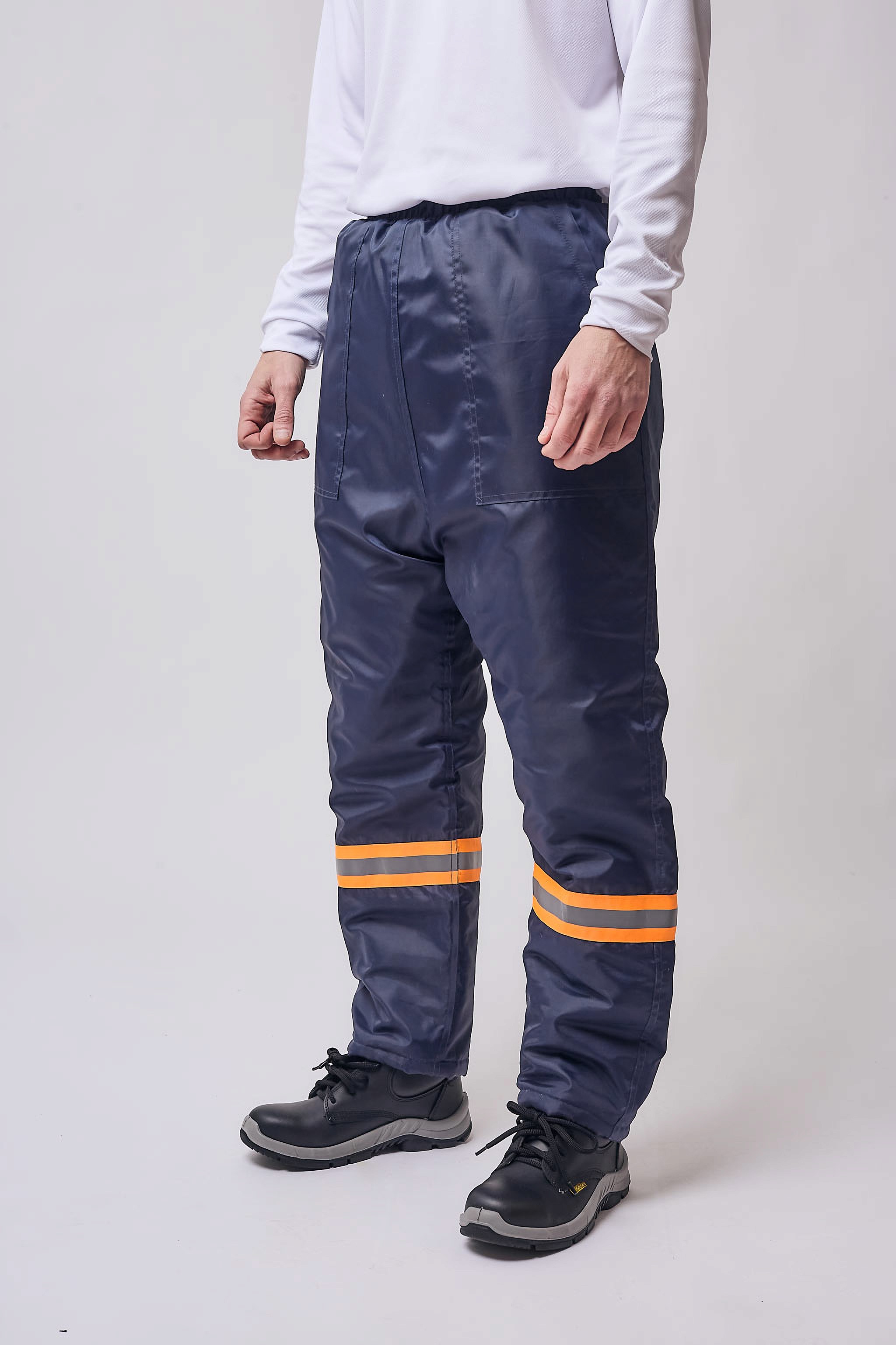 Pantalón térmico abrigado de trucker con relleno de guata y cintura elastizada. Cuenta con dos bolsillos delanteros y uno trasero. Presenta cintas reflectivas 360° en naranja y gris en las pantorrillas. Diseñado para brindar aislamiento térmico, confort y visibilidad en condiciones de frío y baja iluminación.