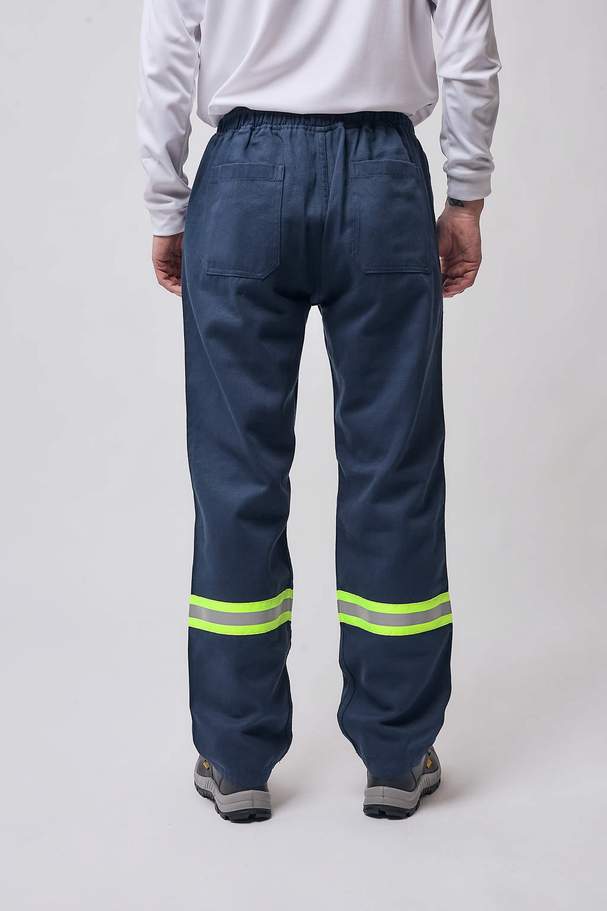 Pantalón de trabajo de gabardina. Con cintura elastizada y cordón, 2 bolsillos delanteros y 2 traseros. Presenta cintas reflectivas amarillo y gris 360° en pantorrillas para mayor visibilidad. Su construcción en tela resistente y su diseño operativo lo convierten en una prenda confiable para tareas exigentes, brindando comodidad, movilidad y seguridad durante toda la jornada laboral.